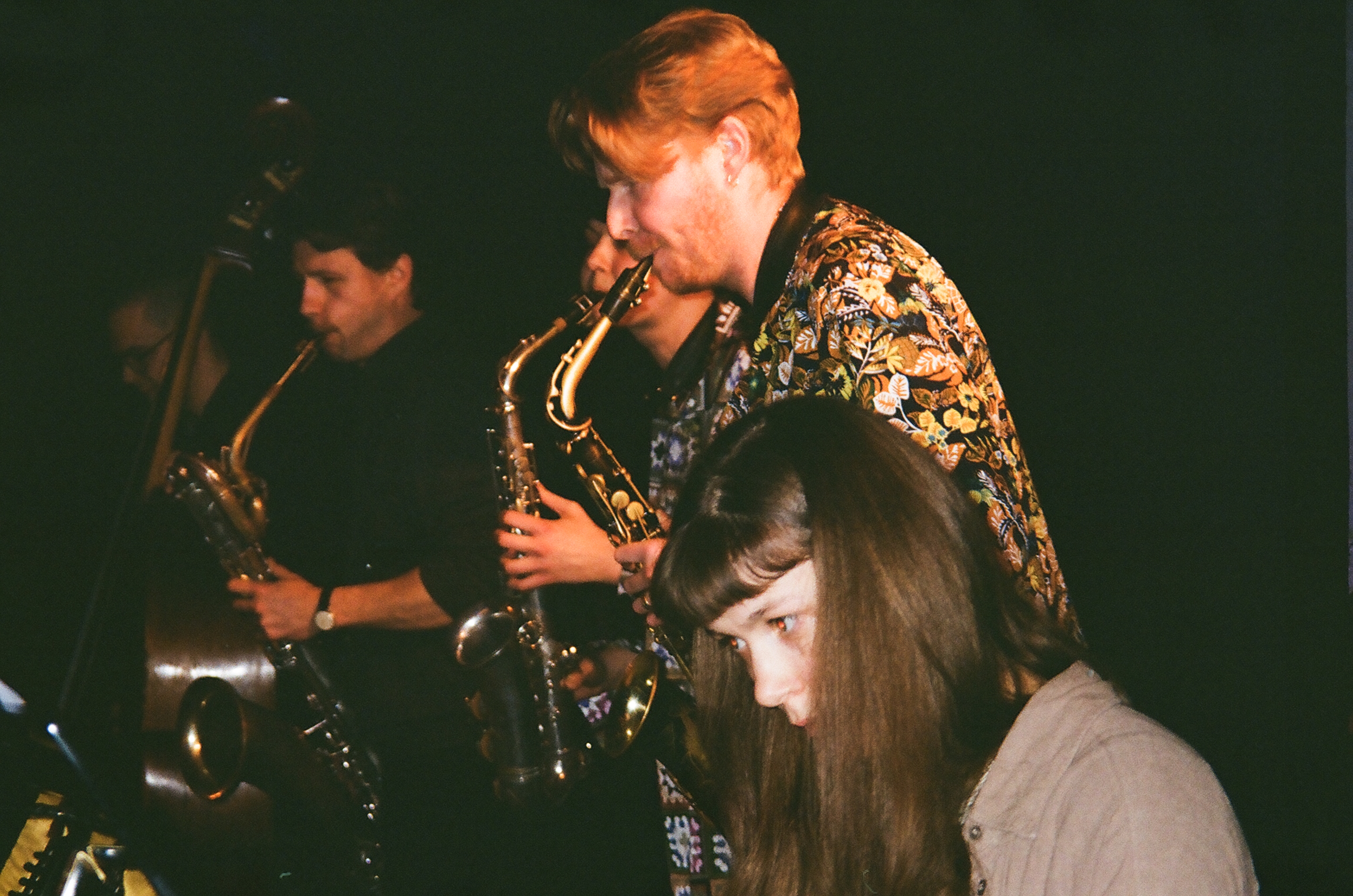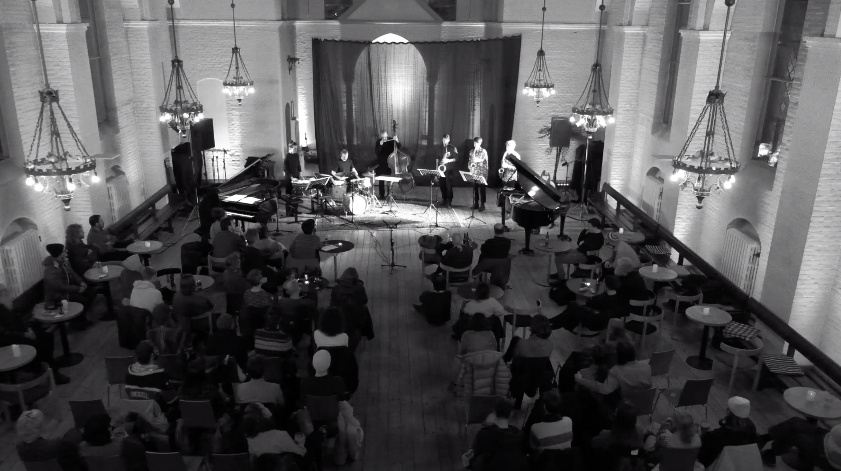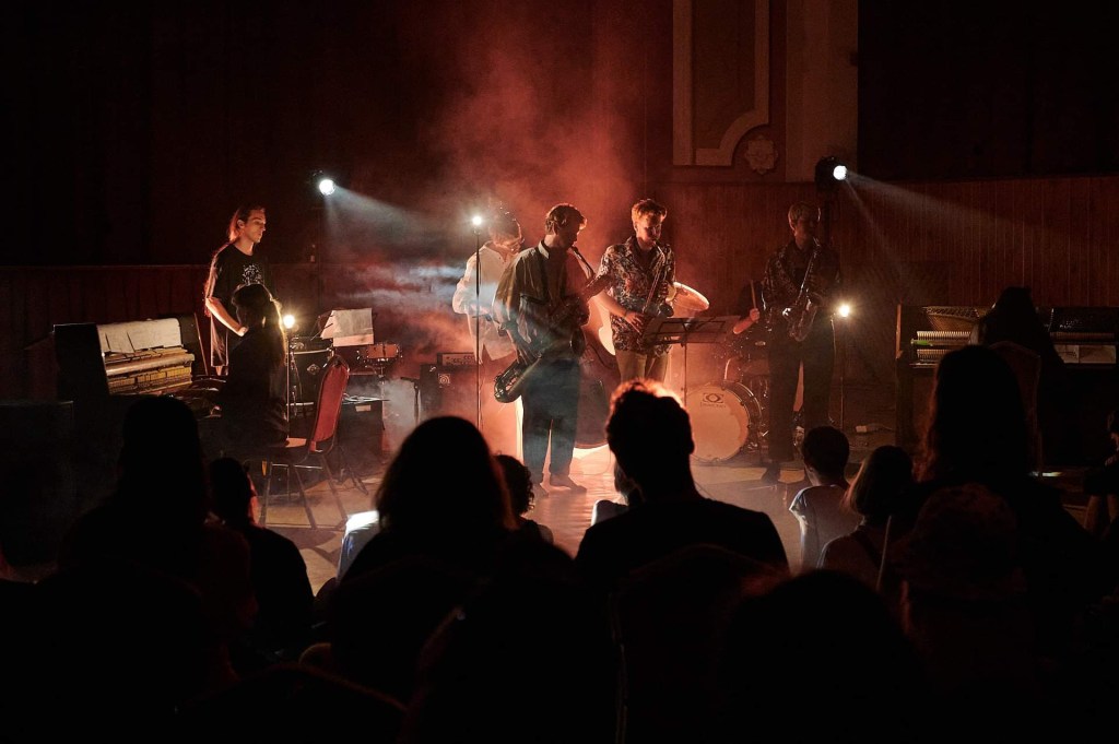 Ensemble doudouči is an international octet which can be characterised by immersive acoustic sound coming from its instrumentation: two alto saxophones, baritone saxophone, two pianos, bass, percussions and double bass. I have started this band in 2021 together with creative musicians circulating around Rhythmic Music Conservatory in Copenhagen. The music of the ensemble is informed by contemporary music for percussion, minimalism and free jazz energy. It is also determined by relatively open scores, often circulating around cyclical and durational events with a trance-like meditative quality, focusing on collective sound. The result is a multilayered sonicscape representing a non-hierarchical partnership.